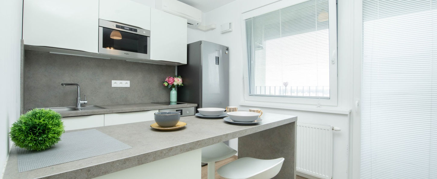 Realitná spoločnosť PRIUS COMPANY s.r.o. Vám exkluzívne predstavuje na predaj novostavbu 1 izbového bytu s balkónom a pivničnou kobkou, poskytujúci krásne výhľady na Bratislavu z 11. poschodia unikátneho bytového komplexu Fuxova.