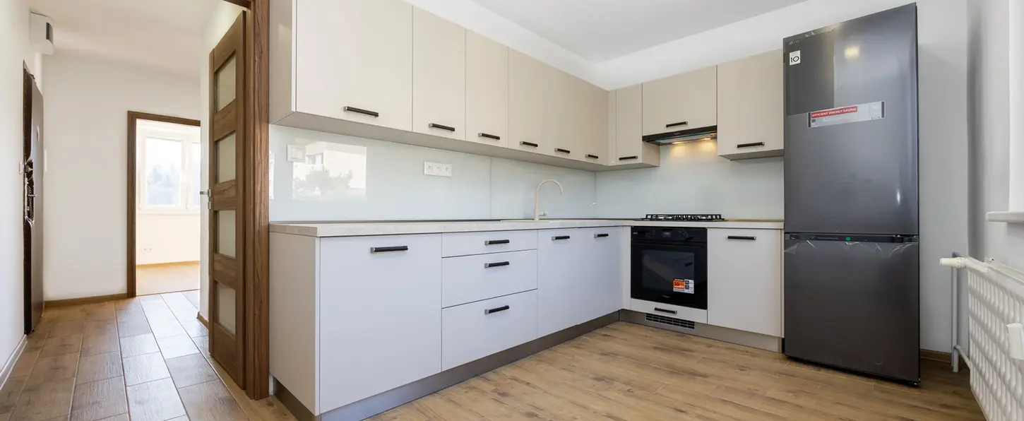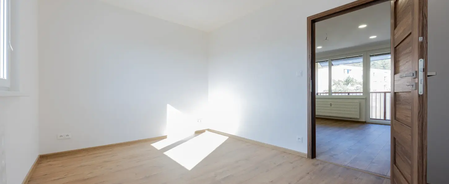 - všetky pôvodné vrstvy zo stien boli odstránené až na podklad, následne sa aplikovali nové hladké omietky a čerstvá maľovka, čo bytu dodáva čistý a jednotný vzhľad,